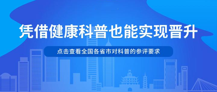 2024年08月18日随着各地区对科普工作重视程度的提高,将科普作品纳入职称评审文件已成为一种趋势。截至目前,包括北京、上海、广州、河北、安徽、四川等20多个省份相继发布了卫生技术人员职称制度改革实施方案,对职称晋升中的科普工作提出了具体要求。