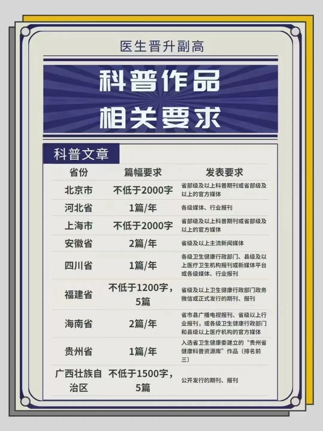 因此,广大医生朋友们请务必重视!需要科普的省份,对自己地区职称晋升文件科普要求。一定的提前准备好自己的科普文!